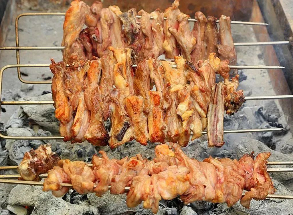 红柳烤肉肥而不腻、色泽鲜美、肉质紧密,有坚实感、食用口感更佳,“天下羊肉尉犁香”,货真价实美名扬。