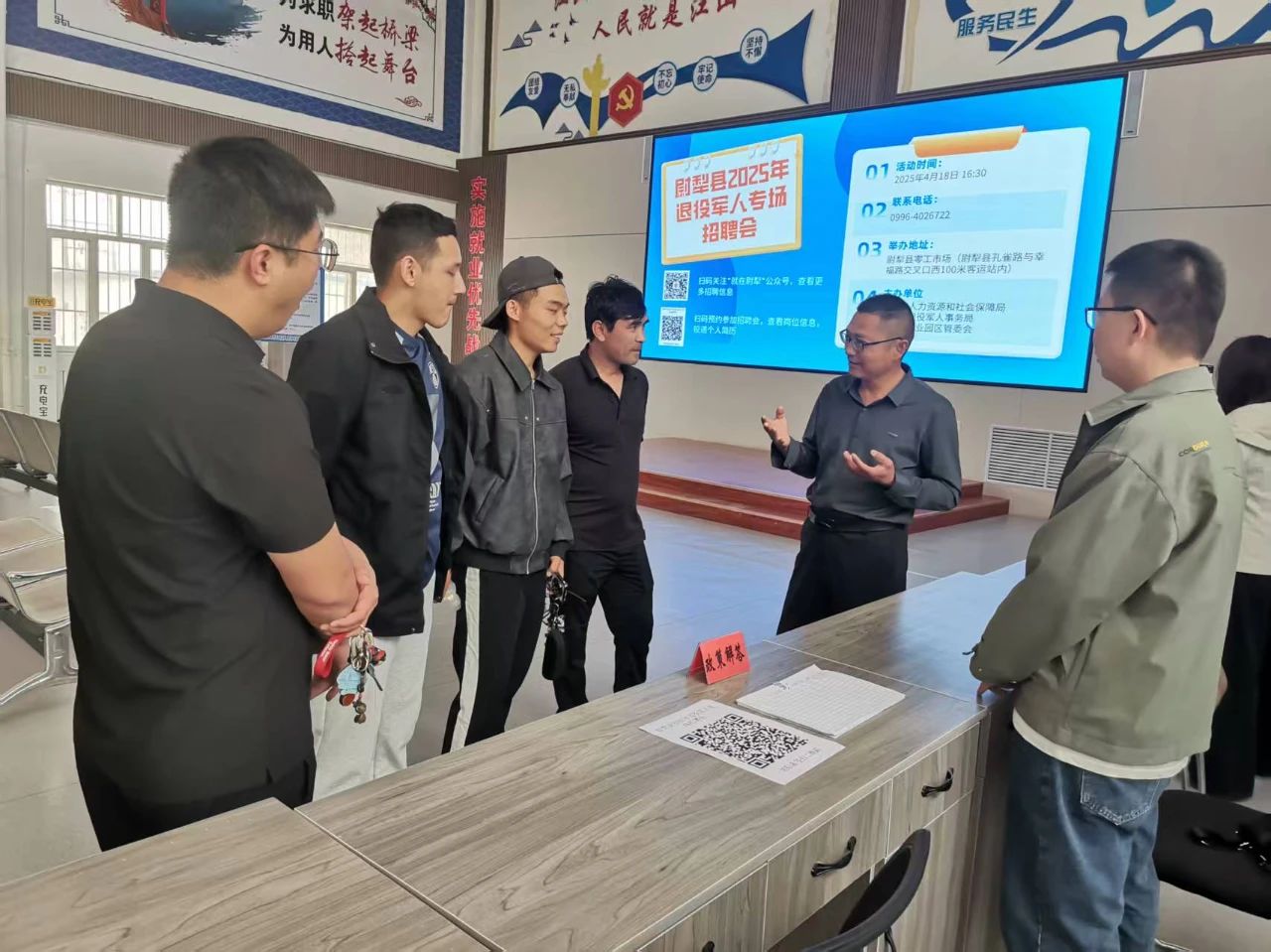 为积极响应国家关于退役军人就业创业的政策号召,切实帮助退役军人实现高质量就业。4月18日,尉犁县人社局联合退役军人事务局精心举办了退役军人专场招聘会。