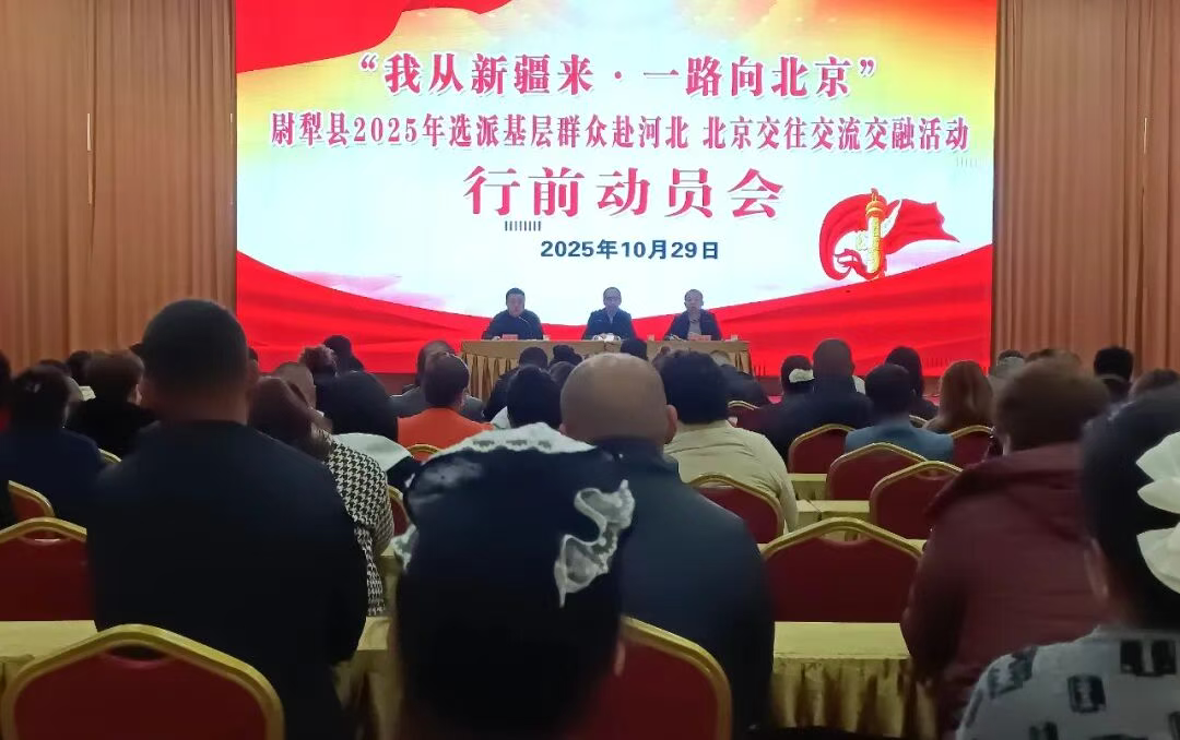 为持续深化新疆与内地各族群众的情感联结与文化互鉴,有形有感有效铸牢中华民族共同体意识,10月29日,尉犁县召开2025年第二批选派基层群众赴河北、北京交往交流交融活动行前动员会。会议以统一思想、明确责任、细化举措为核心,全面部署活动筹备工作,为这场跨越千里的“同心之旅”筑牢保障根基。