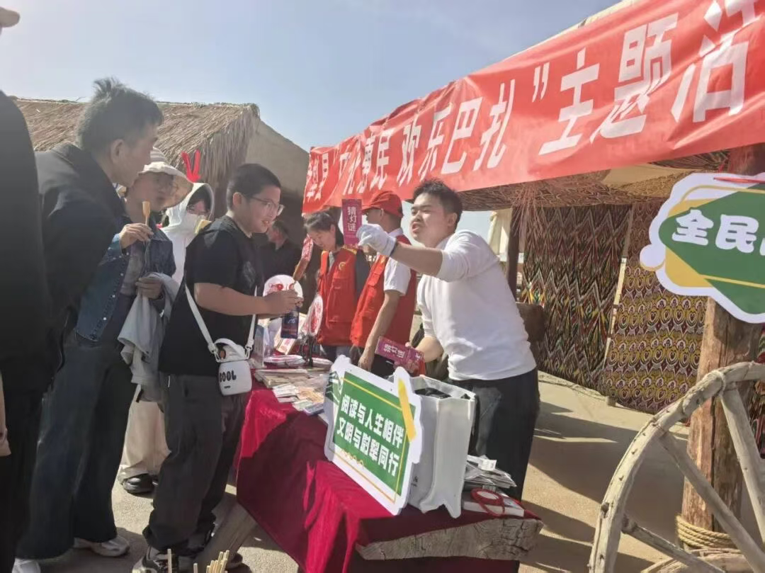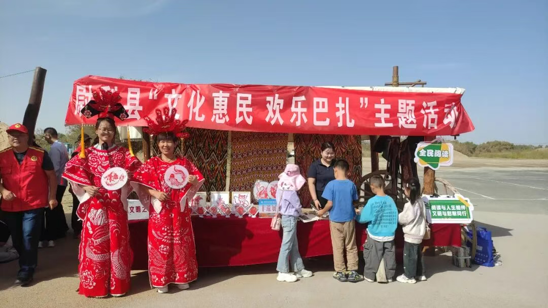 据了解,本次活动由尉犁县委宣传部牵头,联合县文旅局、团结镇、罗布人村寨景区管委会、新华书店等单位共同举办。活动涵盖非遗展示、阅读推广、公益服务等多种形式,展出剪纸作品、移风易俗、扫黄打非、社科普及等宣传文化产品。