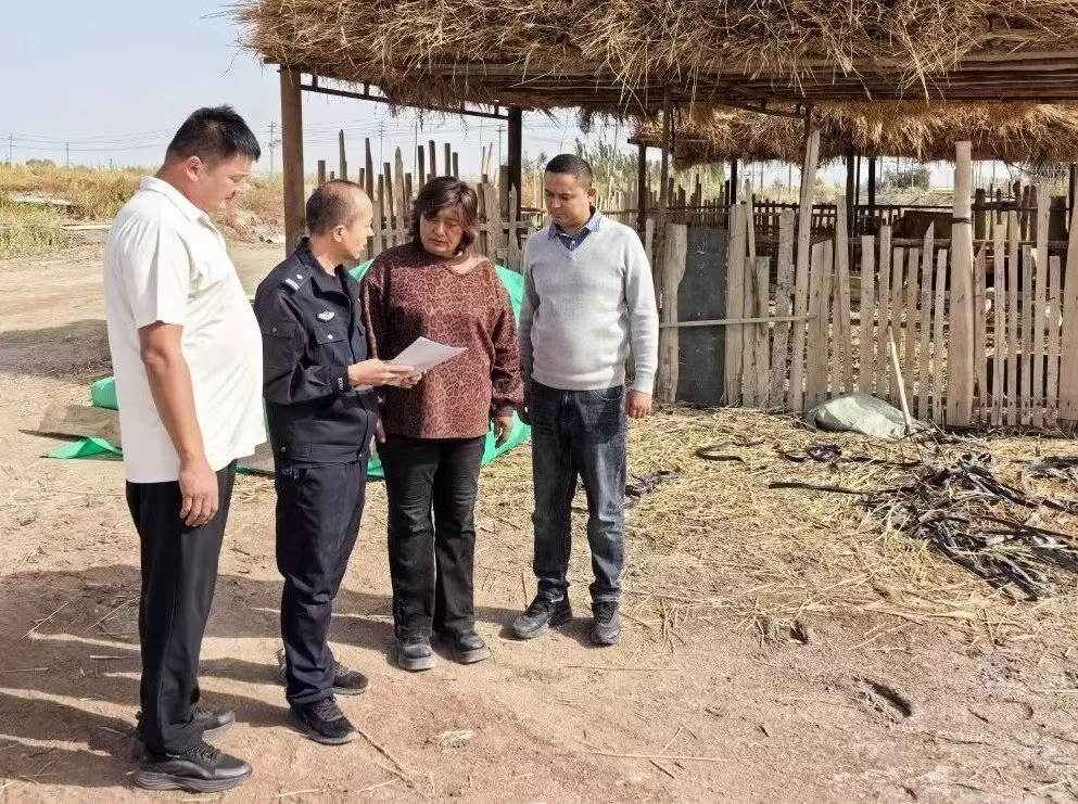 金秋时节,林区草场天干物燥,森林防灭火工作进入关键期。为筑牢生态安全防线,切实提升辖区群众防火意识,10月13日,尉犁县公安局环食药侦大队组织民辅警深入辖区重点林区、草场开展森林防灭火专项宣传活动。