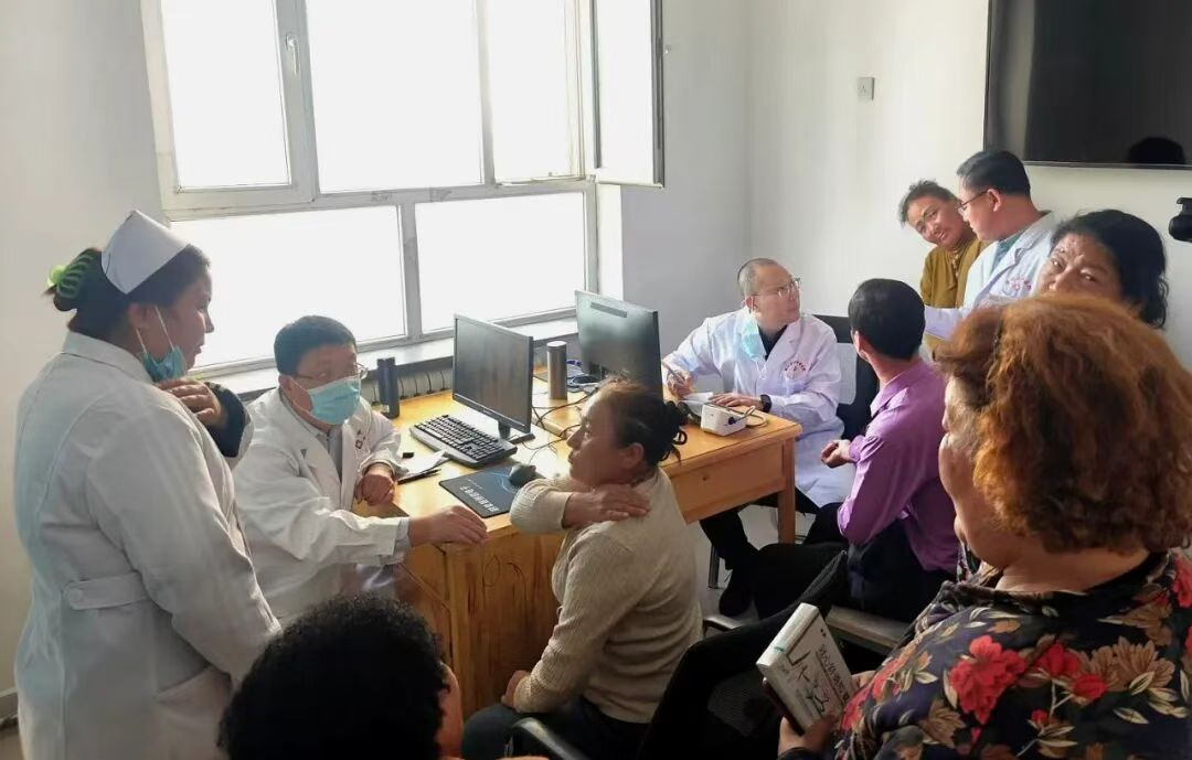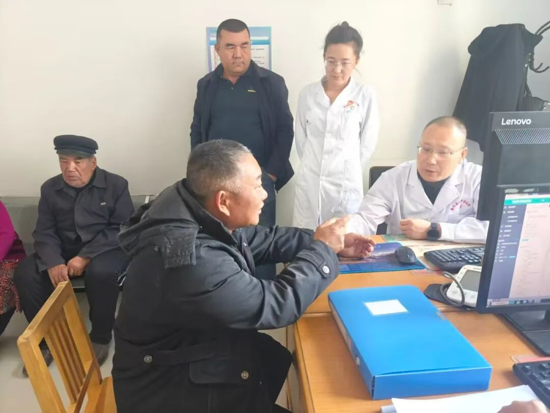 在阿克苏普乡卫生院,一大早便挤满了前来咨询就诊的群众,其中以老年人、慢性病患者居多。专家团队按照学科分工有序坐诊,耐心接待每一位群众,仔细询问病史、查看既往病历报告,针对高血压、糖尿病、关节炎、慢性呼吸系统疾病等常见病进行精准诊断,给出个性化治疗方案与用药指导。