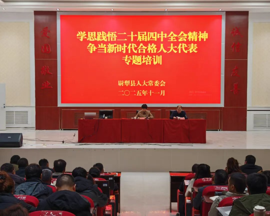 为深入学习贯彻党的二十届四中全会精神,进一步提升人大代表依法履职能力和水平。2025年11月27日,尉犁县人大常委会精心组织开展了“学思践悟党的二十届四中全会精神争当新时代合格人大代表”专题培训活动。培训活动由县人大常委会党组成员、副主任依力哈木·吾买尔主持,县人大常委会党组书记、副主任靳廷昆,党组副书记、主任古丽娜·阿不来提,副主任张晓冬以及全县170余名各级人大代表共同参加学习培训。通过集中学习,各级人大代表深刻领会全会核心要义,精准把握新时代对人大代表工作提出的新要求,为推动县域经济社会高质量发展凝聚智慧、贡献力量。