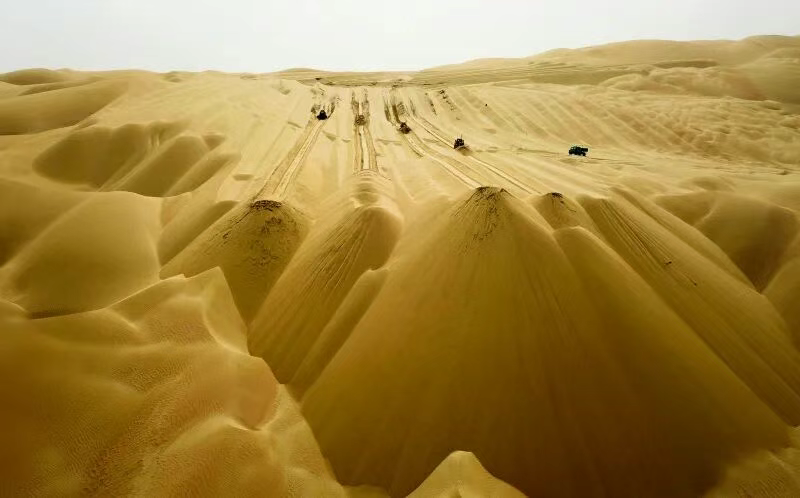 全长334公里的尉犁至且末沙漠公路项目,其中有307公里路段穿行于“死亡之海”塔克拉玛干沙漠,九成路段为流动沙丘;全线有32处高大沙山,最高一处达100多米,相当于30多层楼高。