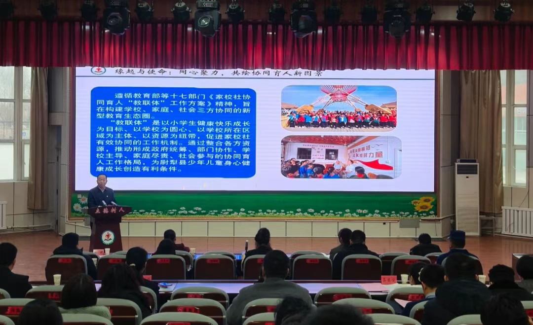 仪式开始,一段精心制作的教联体建设短片缓缓播放,生动展现了家校社协同育人的初心使命与发展规划,让与会者对即将开启的共育之路有了直观认知。随后,第一小学教育集团党委书记张明登台致辞,深入解读教联体建设的时代背景、核心目标与创新模式,并围绕“悦享童年·共育未来”主题讲述协同育人的美好愿景,凝聚起教育共识与育人合力。