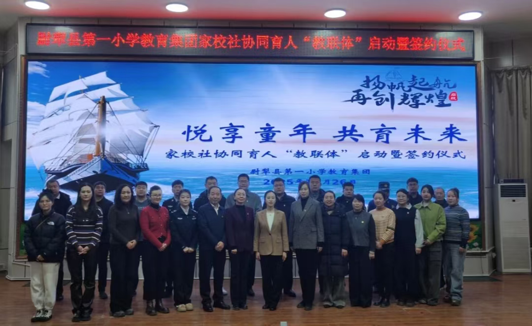 为深入贯彻落实新时代党的教育方针,锚定“政府统筹、部门协作、学校主导、家庭尽责、社会参与”的协同育人核心目标,着力构建全域联动的育人新格局,12月26日,尉犁县第一小学以“悦享童年·共育未来”为主题,举办家校社协同育人“教联体”启动暨签约仪式。县委常委、组织部部长、社会工作部部长李倩雯参加仪式,21家成员单位代表以及学校师生代表、家长代表参加。