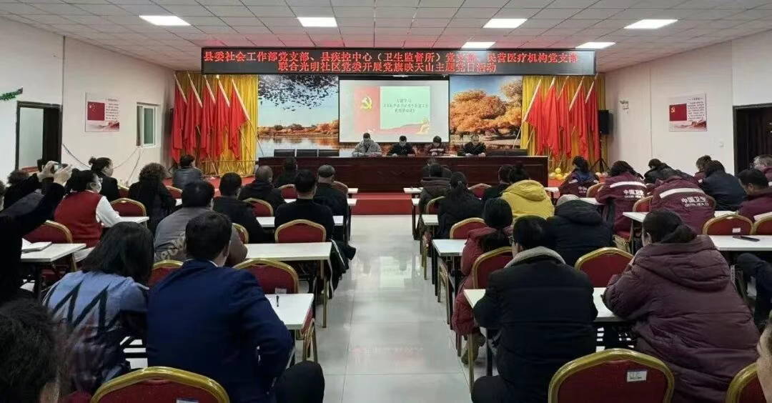 为深化党建引领基层治理,推动志愿服务与民生需求精准对接,1月23日,尉犁县委社会工作部党支部联合县疾病预防控制中心(县卫生监督所)党支部、尉犁镇光明社区党委、县民营医疗机构党支部,在光明社区党群服务中心共同举办“党旗映天山”暨“支部联建聚合力健康服务迎新春”主题党日活动。活动通过理论学习、组织生活与志愿服务相结合,实现党性锤炼与服务群众同频共振。