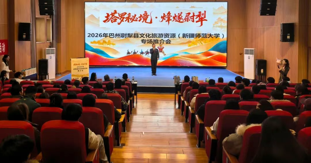 1月14日,尉犁县“塔罗秘境·烽燧尉犁”文旅推介团走进新疆师范大学开展专场推介会暨人才招聘会,将文旅资源展示与优质岗位供给深度融合,为300余名师生呈现了一场兼具文化魅力与发展机遇的盛会。