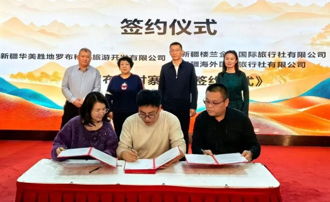 签约仪式上,尉犁县各景区与新疆来玩文化旅游有限公司等30余家企业签署合作协议,以“资源共享、优势互补、客源互送、线路共建”为原则,打通尉犁文旅资源与乌鲁木齐旅游市场的渠道壁垒,为后续常态化联动奠定坚实基础。多家旅行社负责人表示,将依托乌尉高速交通优势,把尉犁“三宝”——罗布人、罗布羊、罗布麻等特色IP深度融入旅游线路,设计“乌鲁木齐+尉犁”跨区域旅游产品,串联起天山脚下都市繁华的城市风情与沙海相连、烽燧守望的大漠秘境风光。