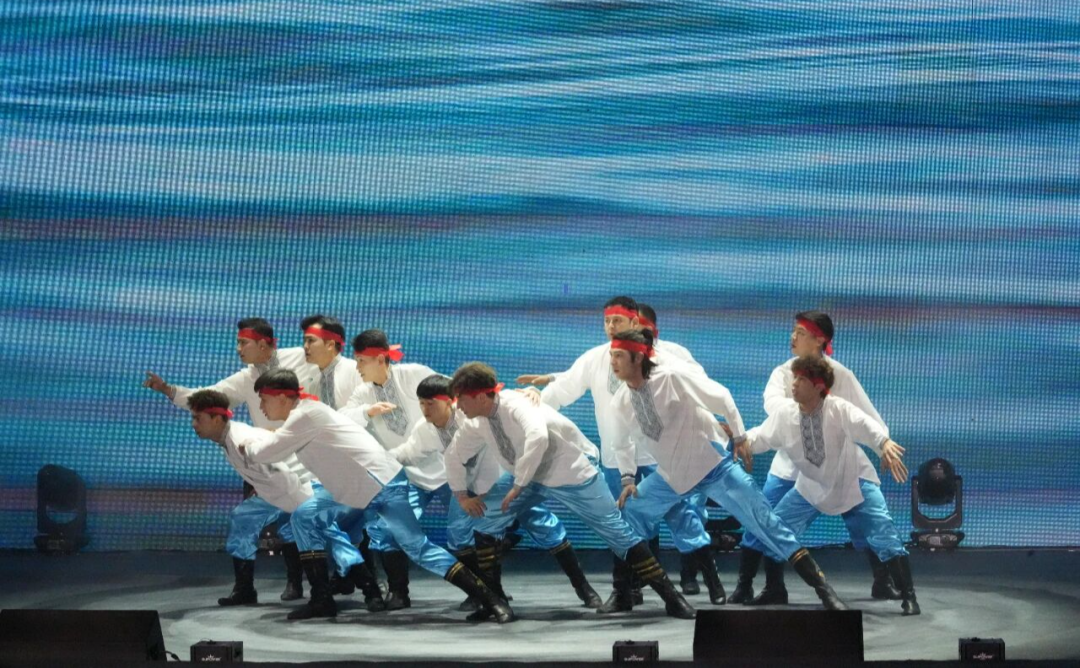 晚会的第三篇章“和谐家园”,将现场氛围推向高潮。舞台上,各族演员手拉手载歌载舞,不同民族的旋律交织相融,生动诠释了“铸牢中华民族共同体意识”的深刻内涵,唱响了“民族团结一家亲”的时代赞歌。晚会尾声,全体演员共同唱响《同心筑梦・家园欢歌》,各种乐器合奏的旋律响彻剧院,“实干铸辉煌、拼搏书荣光、创新开未来”的豪迈呐喊,道出了尉犁人奋进新征程的满腔豪情。