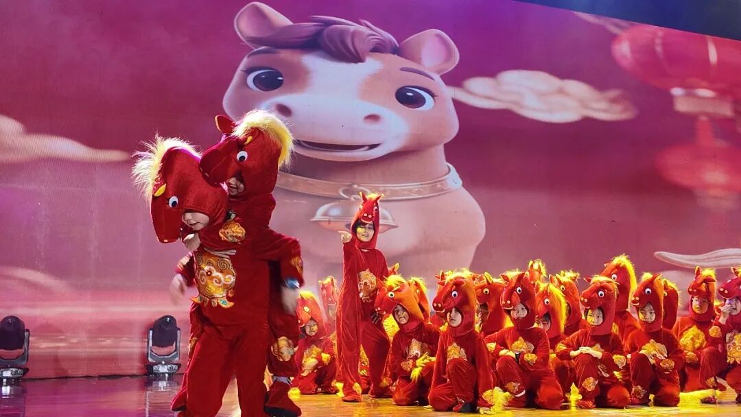 儿童舞蹈《欢乐的小马驹》紧扣马年生肖主题,成为晚会中极具亲和力的暖心节目。一群少年儿童化身“小马驹”,以活泼俏皮的舞姿展现童真活力,同时以“小马奔腾”的意象象征尉犁五年来砥砺奋进、勇毅前行的精神风貌。节目兼具趣味性与正向引导意义,既适合全家观看,也能传递出少年强则家乡强的美好期许。