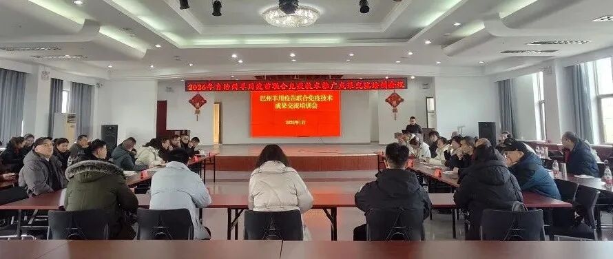 为深入贯彻落实习近平总书记关于“农业科技工作要突出应用导向,加快成果转化,把论文写在大地上”的重要指示精神,全面总结羊用联合免疫技术推广实践经验,部署下一阶段全州畜牧业疫病防控与高质量发展重点任务。2月2日,2026年自治州羊用联合免疫技术推广成果交流会议在尉犁县召开。来自巴州农业农村局、巴州动物疾病控制与诊断中心相关负责人,各县市畜牧分管领导、技术推广骨干、兽医社会化合作社代表及新疆畜牧科学院专家学者齐聚一堂,共话技术创新,共商产业发展。