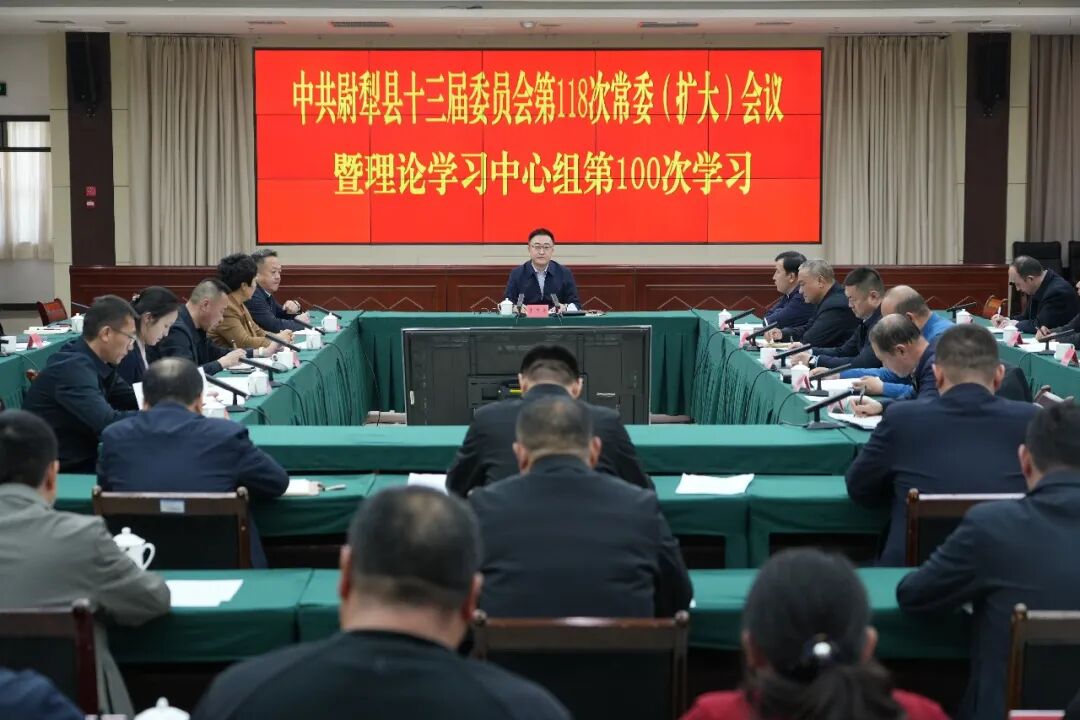 2月24日,中共尉犁县十三届委员会召开第118次常委(扩大)会议暨理论学习中心组第100次学习。会议传达学习习近平总书记在2026年春节团拜会上的重要讲话精神、关于经济工作的重要指示批示精神,安排部署近期重点工作,动员全县上下迅速收心归位、转变状态,以时不我待、奋勇争先的劲头,跑好开局“第一棒”,奋力夺取“开门红”。县委书记李中华主持会议。