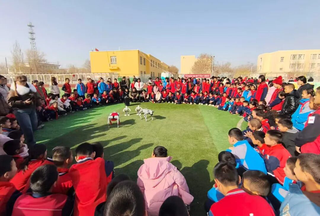 科普服务不仅扎根田间地头,更走进校园课堂。在尉犁县第二小学,新疆科普活动中心的老师带来了机器狗、机器人表演,在讲解机器狗运行科技原理的同时,手把手指导孩子们操作,为700余名小学生搭建起“科技交融+民族团结”的流动课堂。活动现场还设置了多款互动型展品装置,通过光、电模拟直观展现现代化科技成果与科学原理,学生围在展品旁动手操作、仔细观察,在沉浸式体验中感受科学魅力、激发探索热情。