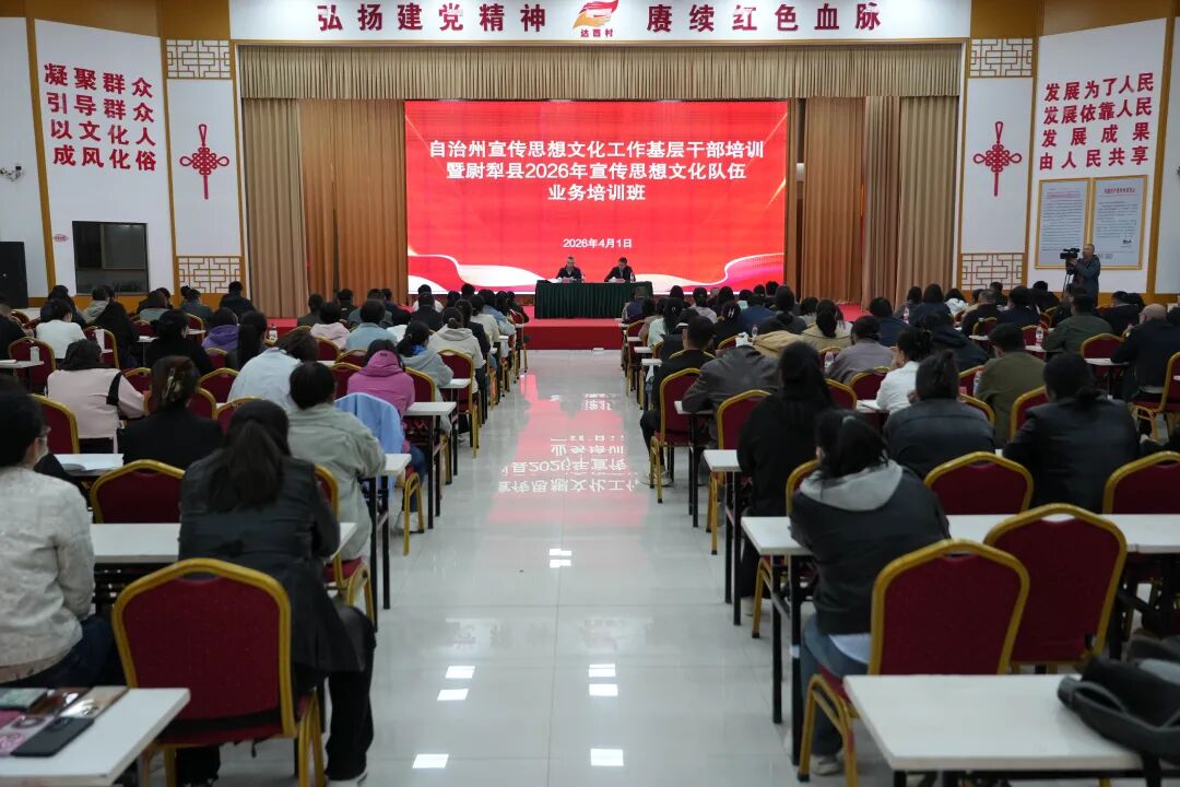 为深入贯彻落实中央、自治区、自治州宣传部长会议精神,进一步提升基层宣传思想文化干部队伍的政治素养、理论水平与履职能力,4月1日-2日,自治州宣传思想文化工作基层干部培训暨尉犁县2026年宣传思想文化队伍业务培训圆满结束。巴州党委宣传部四级调研员吴卫东同志作开班动员讲话,尉犁县委常委、宣传部部长李新华主持。全县各乡镇、县直各部门单位分管领导和业务骨干共130余人参加。