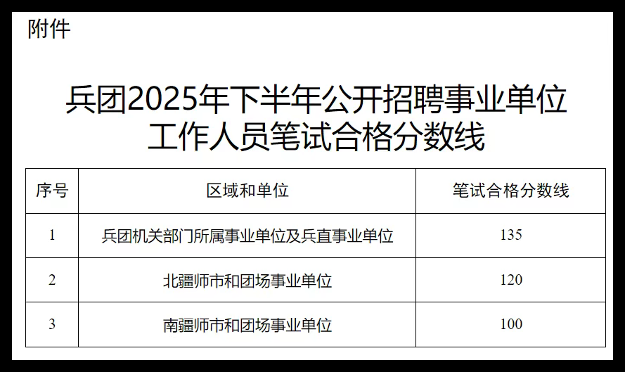 10月11日10:00,考生可登录新疆生产建设兵团考试信息网报名系统(http://btpta.xjbt.gov.cn,以下简称“兵团考试信息网报名系统”)查询笔试成绩和排名。兵团人力资源和社会保障局从笔试合格人员(各区域和单位笔试合格分数线见附件)中按照笔试成绩从高到低的顺序确定进入资格复审人员。