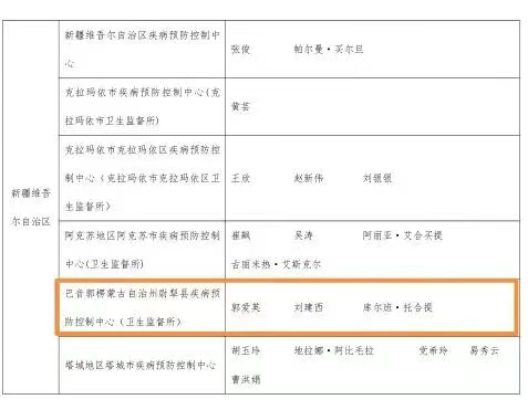 尉犁县疾病预防控制中心(卫生监督所):郭爱英、刘建西、库尔班·托合提