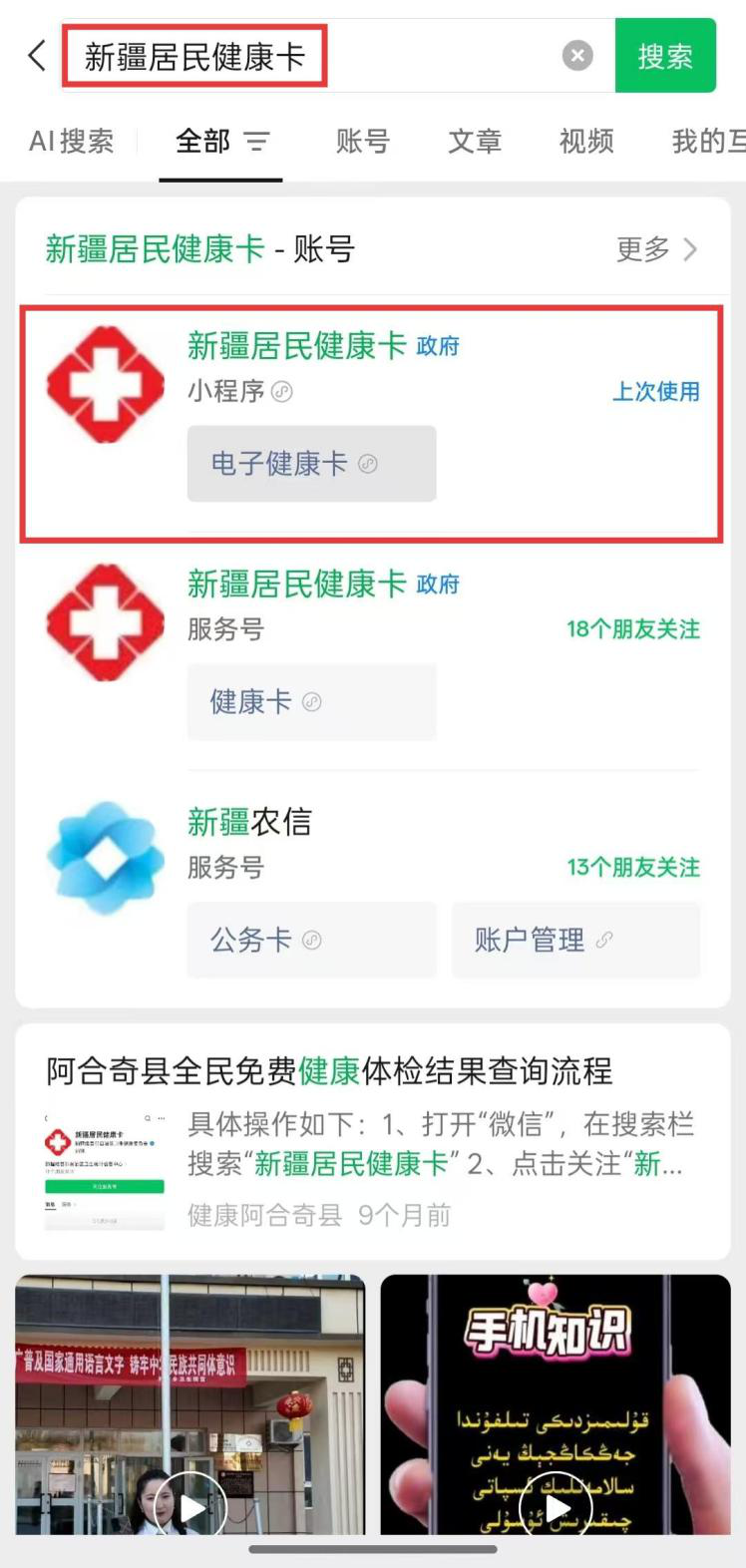 体检结束5个工作日后,可到体检机构领取报告,或通过微信搜索新疆居民健康卡→健康档案→全民体检线上查询;