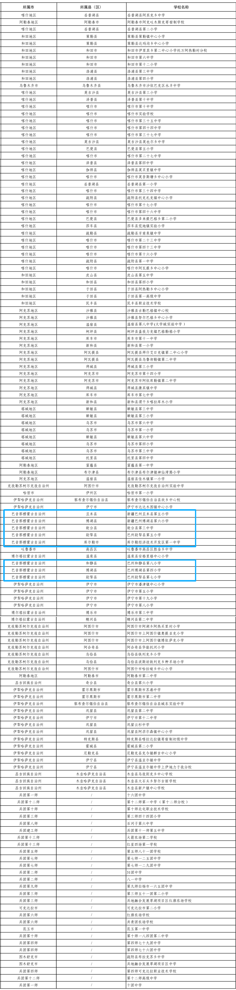 此次新疆(含兵团)入选学校具体名单如下: