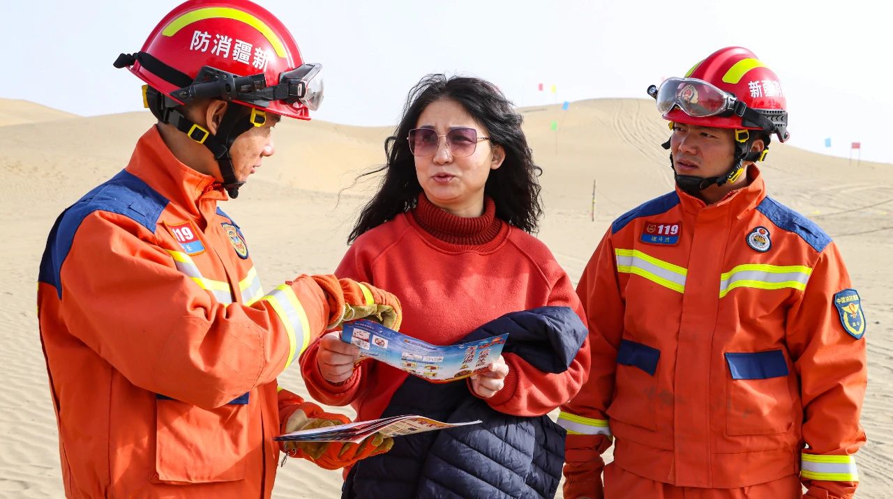 尉犁县消防救援大队防火监督员李冰说:“对景区的木质建筑、设施设备等进行了消防安全检查,现场指出了存在的安全隐患,确保景区的消防安全。同时,还向游客宣传了进入胡杨林中要注意防火,向他们普及了消防安全知识,让景区从业者和游客从思想上真正提高消防安全意识,从行动上进一步落实消防安全的责任,从而做到人人都是生态景区的守护者、消防的参与者。”