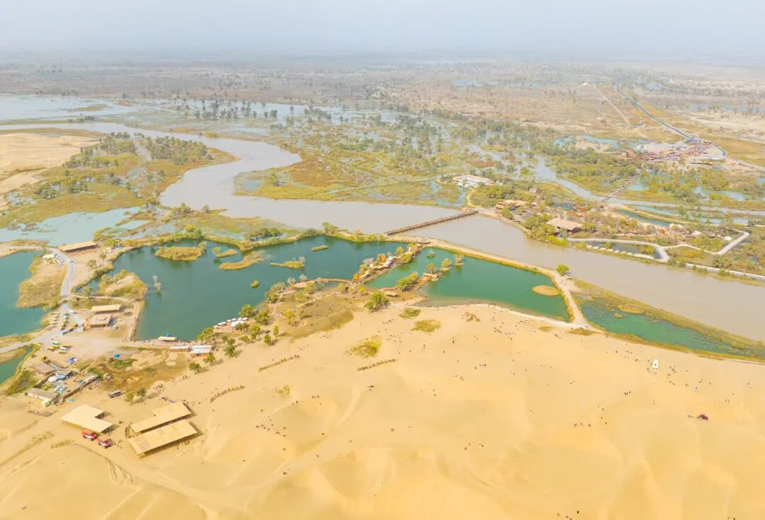位于塔克拉玛干沙漠北缘的罗布人村寨是一个集沙漠、胡杨、河流、湖泊于一体,自然景色各异,生态环境优美的旅游区。是观光摄影、沙漠娱乐、人文体验的好去处。