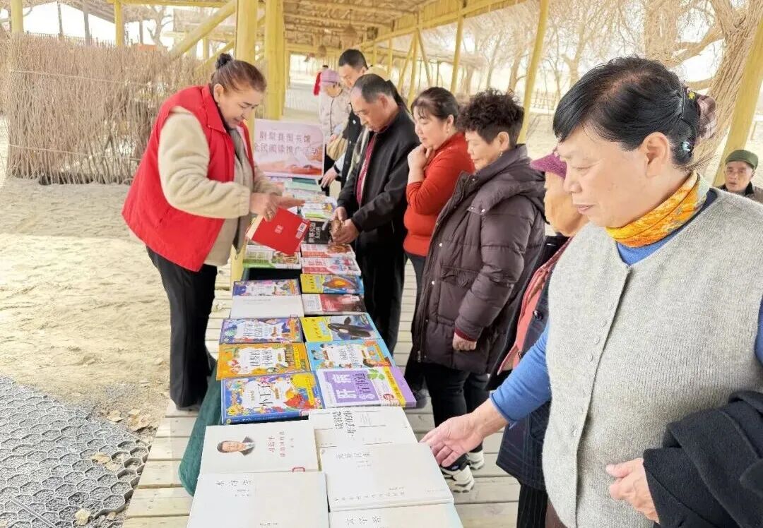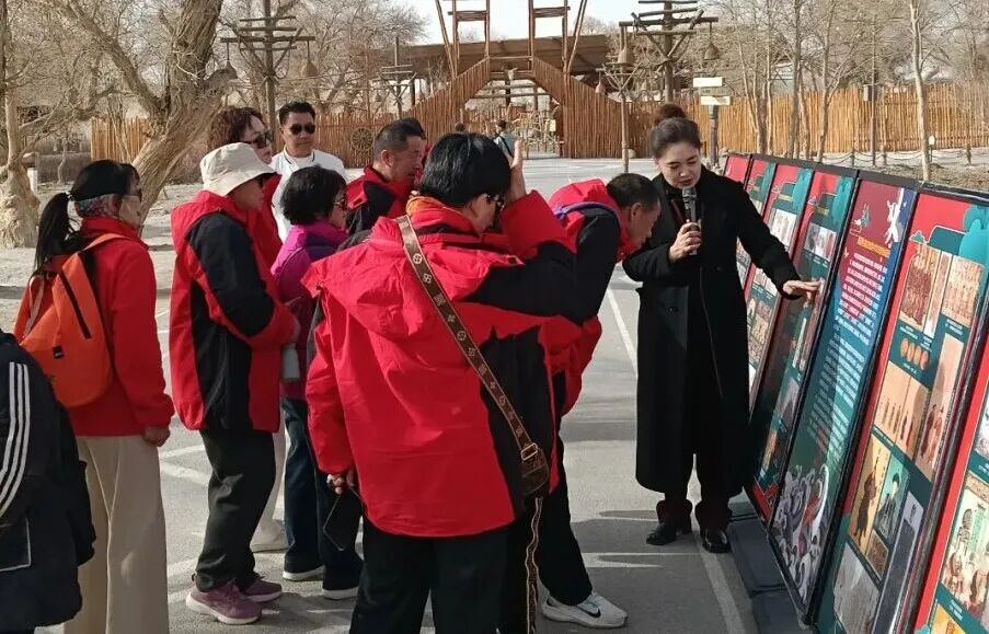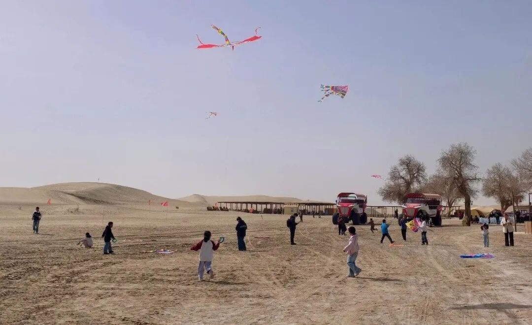东沙山点位同样热闹非凡,非遗传承人现场展演传统技艺,文创展品琳琅满目,纸鸢祈福比赛热闹开赛,五彩风筝翱翔在沙漠上空,成为春日里最美的风景。此外,“全民阅读”流动图书展、“新疆四史”流动博物展等走进老村寨,书香与文化气息交融,休闲棋牌竞技让老人小孩在游玩中尽享轻松惬意,一系列活动将民俗、文化、体验深度融合,让游客在参与中感悟尉犁的文化底蕴,进一步铸牢中华民族共同体意识。