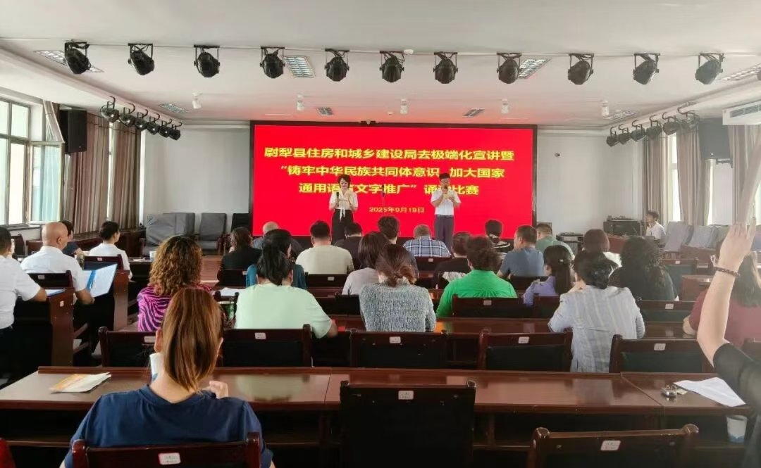 为深入贯彻国家语言文字方针政策,推动国家通用语言文字在住建系统的普及与应用,9月19日,尉犁县住建系统举办了以“铸牢中华民族共同体意识加大国家通用语言文字推广”为主题的诵读比赛。此次比赛吸引了来自住建系统各部门、单位的众多选手踊跃参与。
