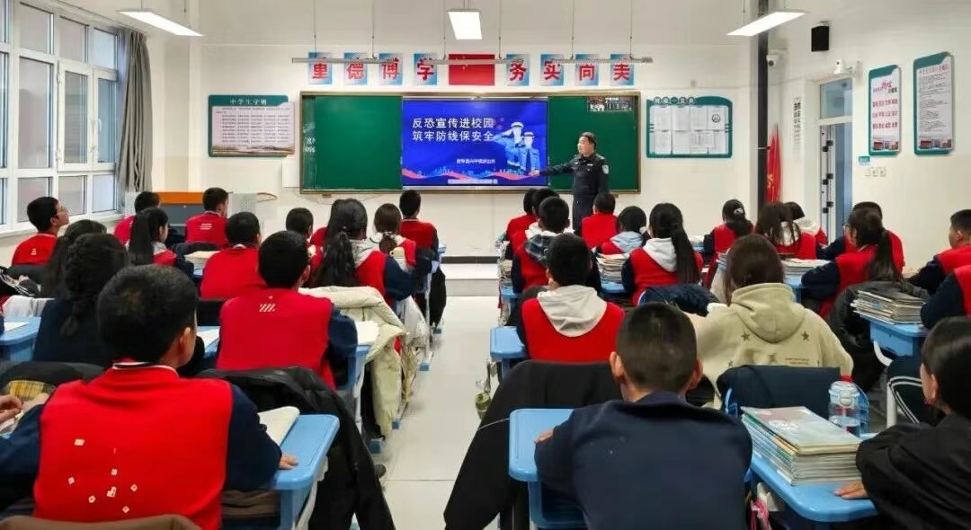 为切实强化校园师生反恐安全意识,提升应急防范与自救互救能力。12月22日,尉犁县公安局兴平镇派出所走进尉犁县第二中学(九年级校区),开展以“反恐宣传进校园筑牢防线保安全”为主题的反恐怖宣传教育活动,为师生们送上了一堂生动的安全教育课。