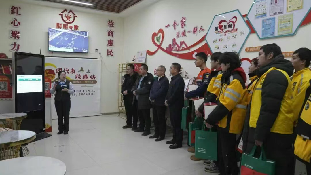 服务联动暖人心。针对快递员、外卖小哥等新就业群体的实际需求,四大联建单位精心筹备了“暖心礼包”,其中包含保温水杯、棉手套、便携充电宝等物品,为奔波在外的新就业群体送去冬日里的浓浓暖意与贴心关怀。活动现场同步开展了反诈宣传、金融知识普及与保险政策讲解活动,工作人员通过面对面答疑、互动式讲解等形式,助力新就业群体提升风险防范能力,切实守护好自己的“钱袋子”。