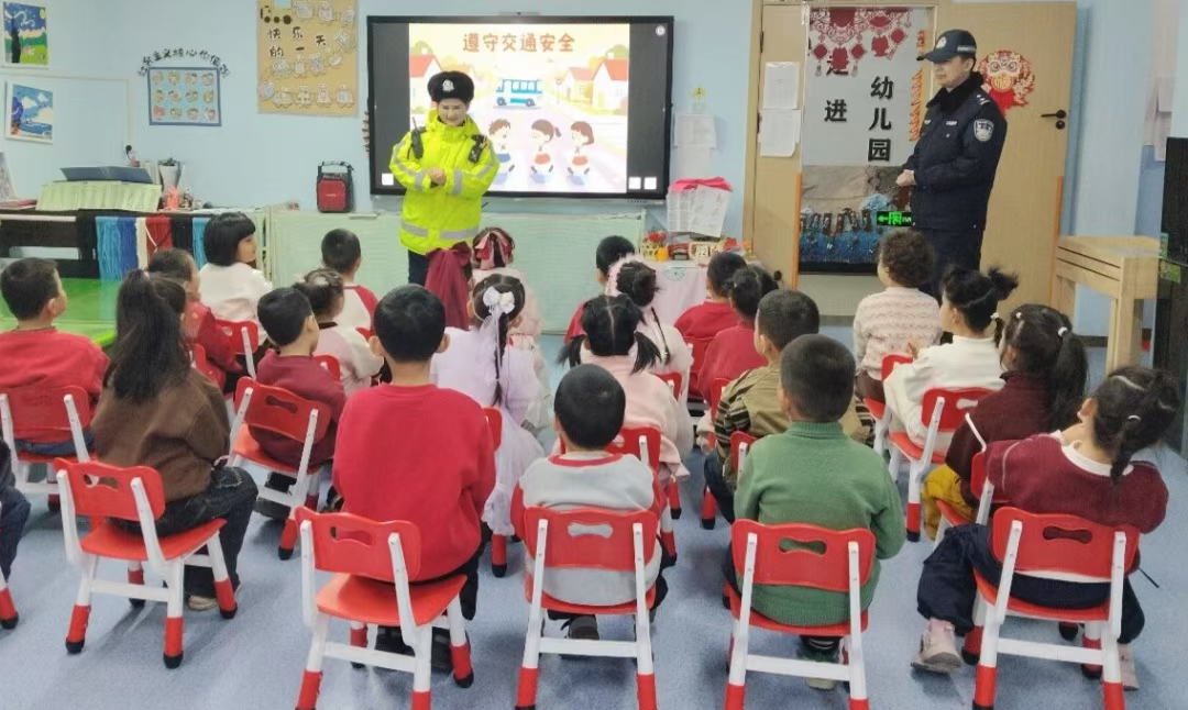 在趣味问答环节,民警们抛出一个个与日常出行息息相关的问题:“红灯亮了我们应该怎么做呀?”“过马路要走哪里才安全呢?”问题刚一出口,孩子们便立刻高高举起小手,争先恐后地抢答,清脆响亮的童声回荡在教室的每一个角落。在一问一答的轻松互动中,孩子们将“红灯停、绿灯行、黄灯亮了等一等”“过马路要走斑马线”这些安全准则牢记于心。民警们还结合幼儿的出行场景,反复叮嘱孩子们,在马路上不随意奔跑、不追逐打闹,时刻拉紧家长的手,遇到车辆要主动避让,牢牢守住出行安全的第一道防线。