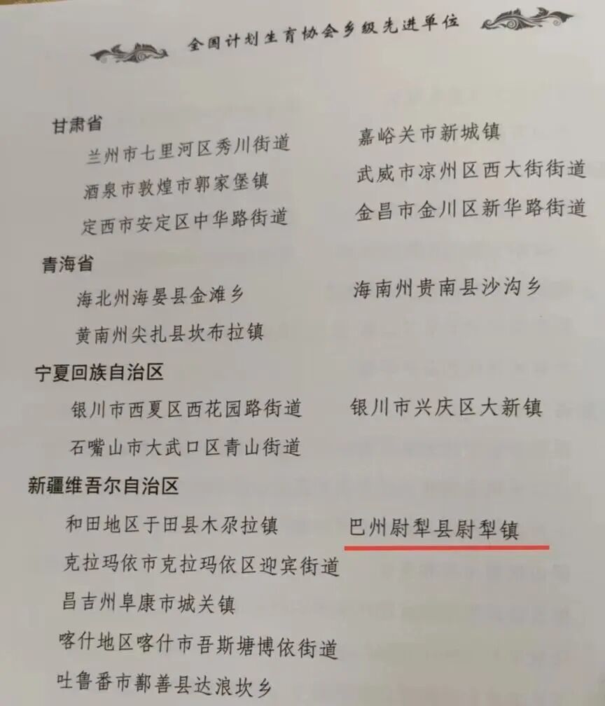 近日,中国计划生育协会印发《中国计划生育协会关于表彰全国计划生育协会先进单位和先进个人的决定》,尉犁镇荣获“全国计划生育协会乡级先进单位”称号。这一国家级荣誉的获得,是对尉犁镇长期以来在人口计生协工作领域深耕细作、锐意创新的高度肯定与最佳褒奖。