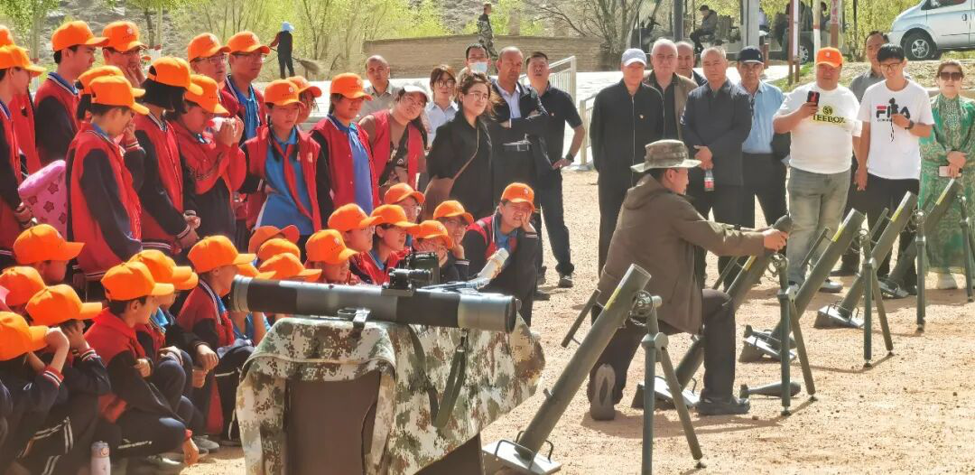 全体人员还共同聆听了国防教育课,参与迫击炮等武器模拟操作体验。在观看电影《横空出世》片段后,举行了一场简朴而深刻的感悟分享会。学生们争相发言,分享对“隐姓埋名”奉献的理解,表达“科学报国”的志向,畅谈从点滴做起、努力学习、强健体魄、立志成才的决心,真挚的话语赢得阵阵掌声,也让在场的成年人看到了国家的未来与希望。党员干部、师生还在“马兰魂”雕塑前庄严合影,深刻感悟马兰人扎根戈壁、为国铸盾的坚定信念。