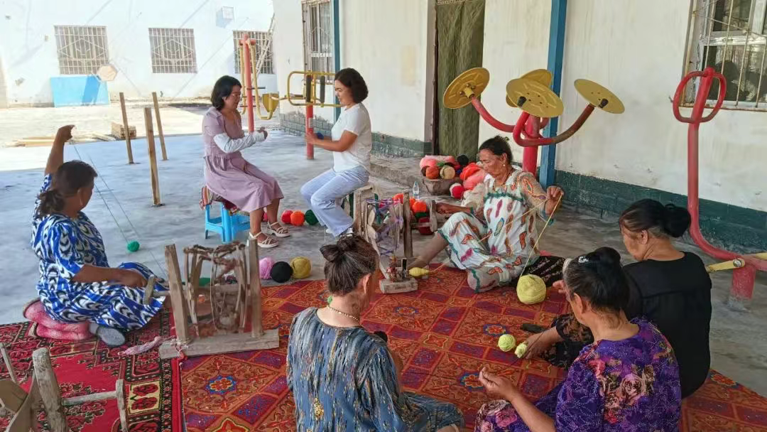 走进“帕拉孜坊”,传统织机的韵律与妇女的谈笑声交织成独特的乐章:没有机器轰鸣,只有羊毛与棉线交织的沙沙声;没有年轻流水线工人,只有乡里50岁以上女性的一双双布满岁月痕迹却依然灵巧的手,她们用指尖编织着文化与生活的双重希望。