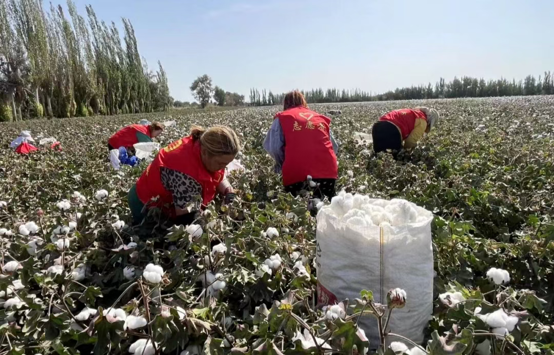 棉花田间,志愿者们认真完成采摘、装袋、搬运等采棉工序。大家俯下身子,一边采摘棉花,一边向职工群众宣传党的惠民政策,充分发扬“不怕脏、不怕累、不怕苦”的精神,以实际行动践行初心使命。尽管田间劳作辛苦,但大家始终保持高涨的热情与十足的干劲。看着一袋袋采摘回来的棉花,众人脸上都洋溢着丰收的喜悦。
