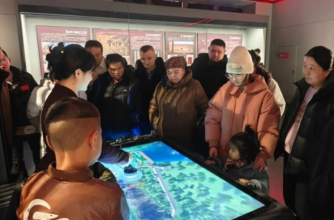一路走来,家乡的文化新景与历史记忆交织成动人画卷。在“烽燧尉犁”主题口袋公园,以烽燧文化为灵感的景观建筑独具地域韵味,昔日的闲置边角地,如今已成为居民休闲健身的“幸福空间”;走进承载着几代人集体记忆的尉犁县老电影院,复古的老物件、新旧对比影像资料唤起跨越时代的乡愁共鸣;在丝绸之路·长城文化博物馆,文物与数字化展陈技术交相辉映,裸眼3D体验、体感互动等现代手段,大家沉浸式感受万里长城的磅礴魅力与中华文明的多元一体。每一处景点都让干部与亲戚们驻足流连,在行走中读懂家乡的文化底蕴与发展活力。
