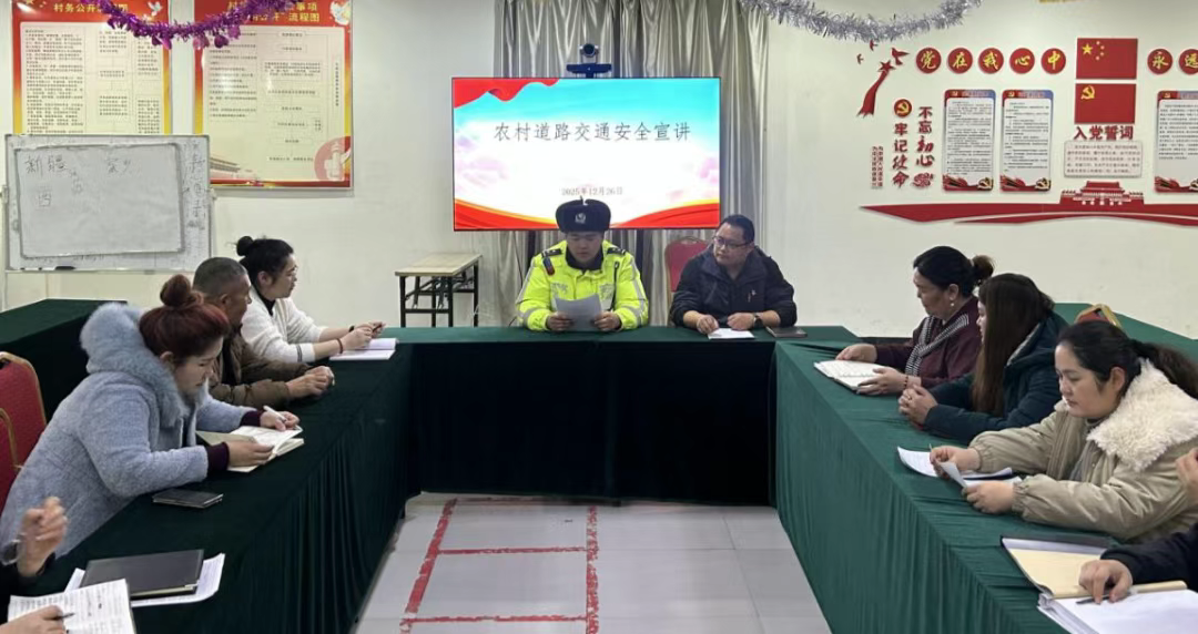 此次宣传聚焦农村交通安全薄弱环节,创新采用“交警培训村干部、村干部带动村民、线上线下全覆盖”的分层宣传模式,让安全知识“走进”田间地头、“融入”村民生活。交通安全宣传培训会上,民警结合农村道路交通事故典型案例,用通俗易懂的语言讲解农用车辆违法载人、电动三轮车非法改装、骑乘摩托车不戴安全头盔、酒驾醉驾等常见交通违法行为的危害,重点培训村干部如何识别道路安全隐患、如何向村民普及交通安全知识、如何协助开展日常交通劝导等实用技能。同时,向村干部发放宣传资料,鼓励村干部发挥“人熟、地熟、情况熟”的优势,带动村民提升安全意识。