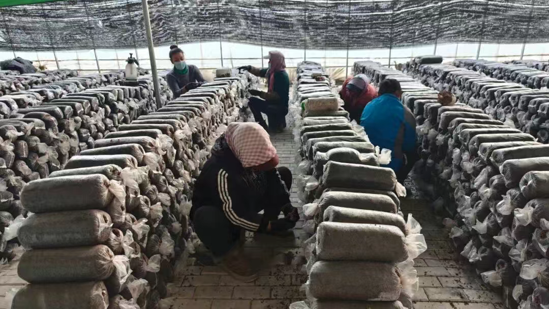 12月4日,团结镇东海子村食用菌种植基地内一片繁忙,工人们正娴熟地为菌棒接种。这批以棉籽壳、香梨枝等农业废弃物为基料的菌棒,经发菌培育后将于春节旺季产出优质平菇,成为当地群众增收的“致富菇”。目前基地已完成6万棒菌种接种,计划总量达15万棒,资源循环利用的模式既变废为宝,更有效降低了生产成本。
