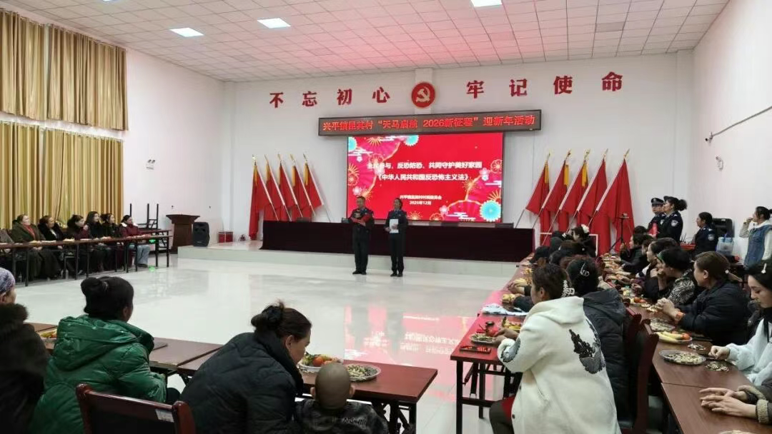 12月26日,兴平镇昆其村“天马启航・2026新征程”迎新年主题活动在村一楼会议室热闹开启。本次活动由村“两委”牵头,联合村组干部、驻村工作队、村警务室等单位,并邀请县交警大队及辖区派出所共同组织,吸引了众多村民踊跃参与。