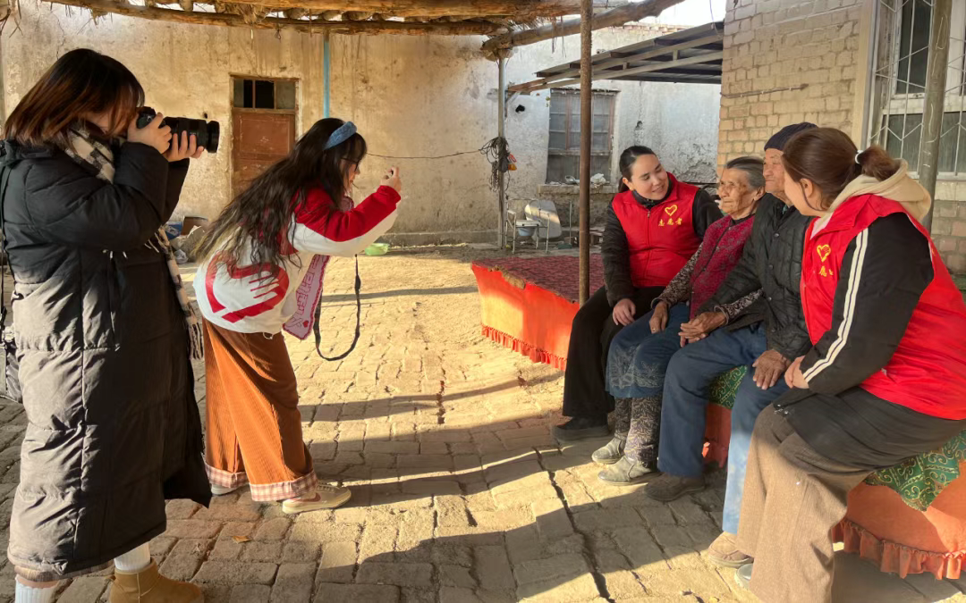 在村干部引导下,志愿者走进庭院、深入农户,为年事已高、行动不便的老人提供上门拍摄服务。镜头之下,结婚数十载的老夫妻第一次在自家小院拍摄正式的合影,笑容羞涩而甜蜜。随着快门的“咔嚓”声响起,一张张灿烂的笑脸、一个个温馨的场景被永久珍藏。志愿者们不仅用镜头记录,更用语言沟通、用行动关怀,他们与村民唠家常,了解他们的生活状况与所需所盼。