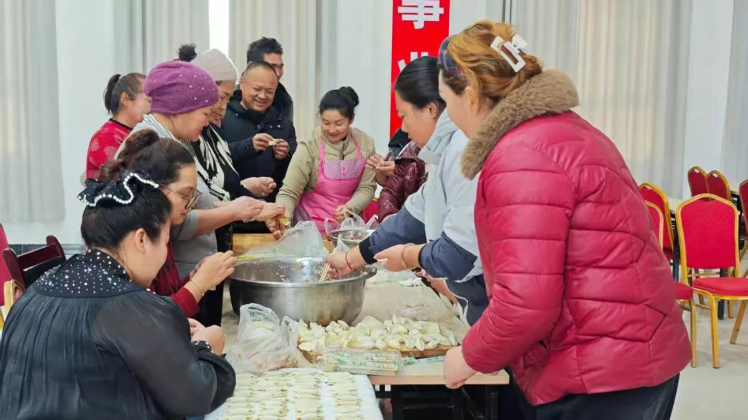 活动现场分工明确、协作默契。年轻党员与志愿者虚心学习包饺子技巧,在互动中拉近了距离。大家围坐桌前,一边忙碌一边拉着家常,聊村里的发展变化、谈生活的幸福点滴,陌生感在协作中消散,情谊在互动中升温,让两个村的距离越拉越近,让民族团结的种子在心中生根发芽。