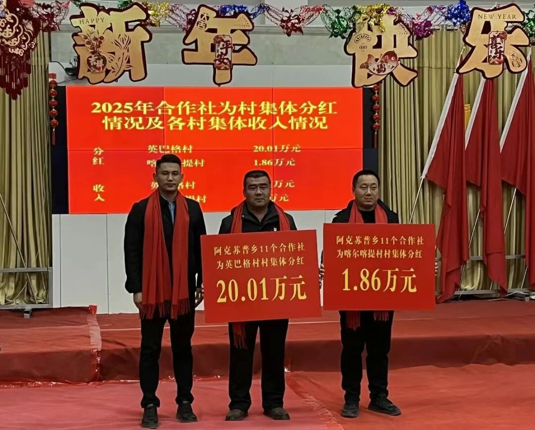 近年来,阿克苏普乡紧紧围绕县委“393”经济高质量发展体系,深入实施“一主多辅”产业发展思路,充分发挥肉鸽、肉兔、盐湖旅游、赞鸽部落餐厅等特色产业资源优势,持续探索多元化村集体经济发展路径。2025年,全乡产业发展取得显著成效,十一个合作社实现村集体、群众分红共计36.7万元,英巴格村村集体收入180万元,喀尔喀提村村集体收入27万元,较上年实现大幅增长,并向合作社员工发放绩效奖励、奖品5.1万元,有效激发了集体经济活力与员工积极性。