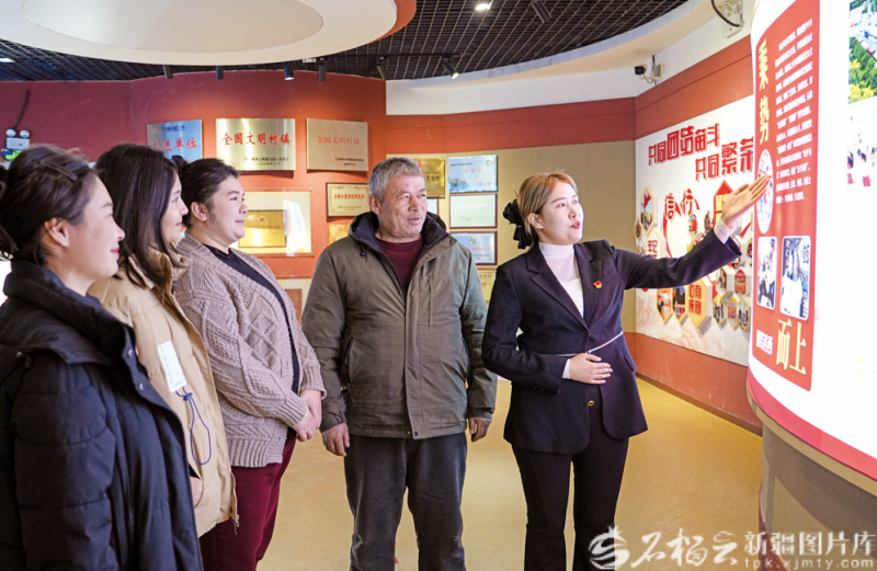 在达西村达西展馆,讲解员正在讲解达西村各族群众的奋斗故事。汪志鹏/摄