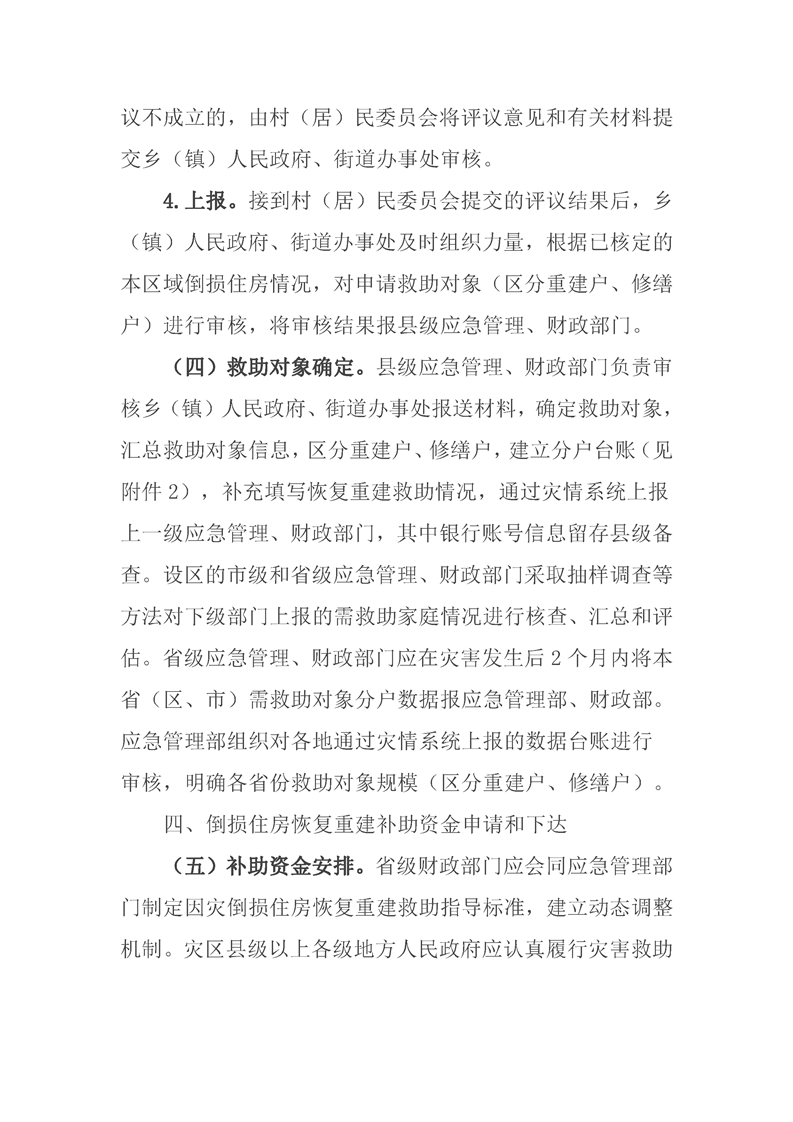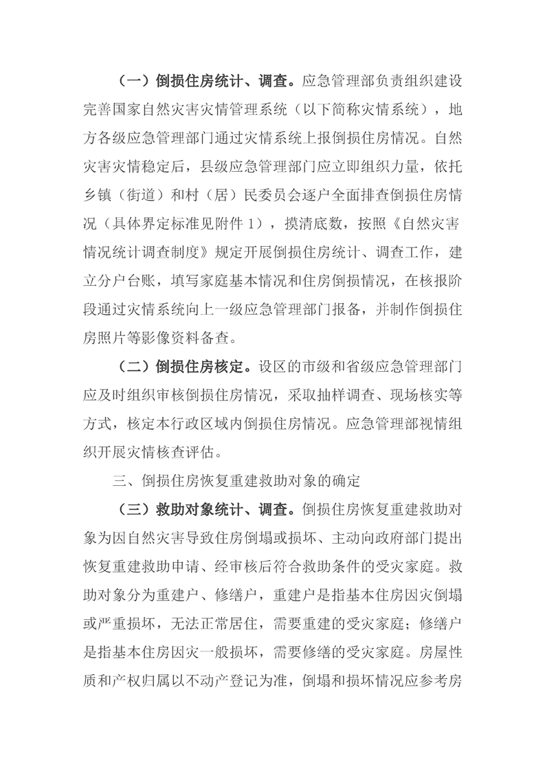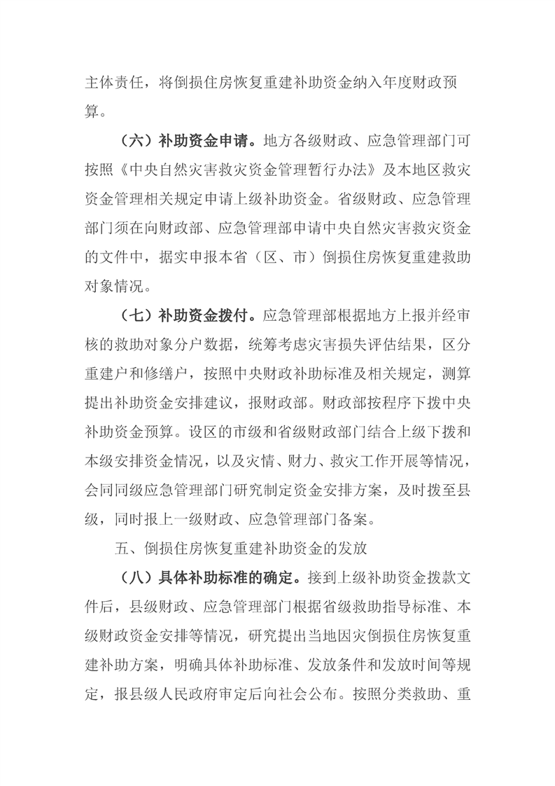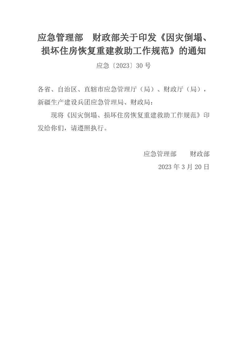 应急管理部 财政部关于印发《因灾倒塌、损坏住房恢复重建救助工作规范》的通知