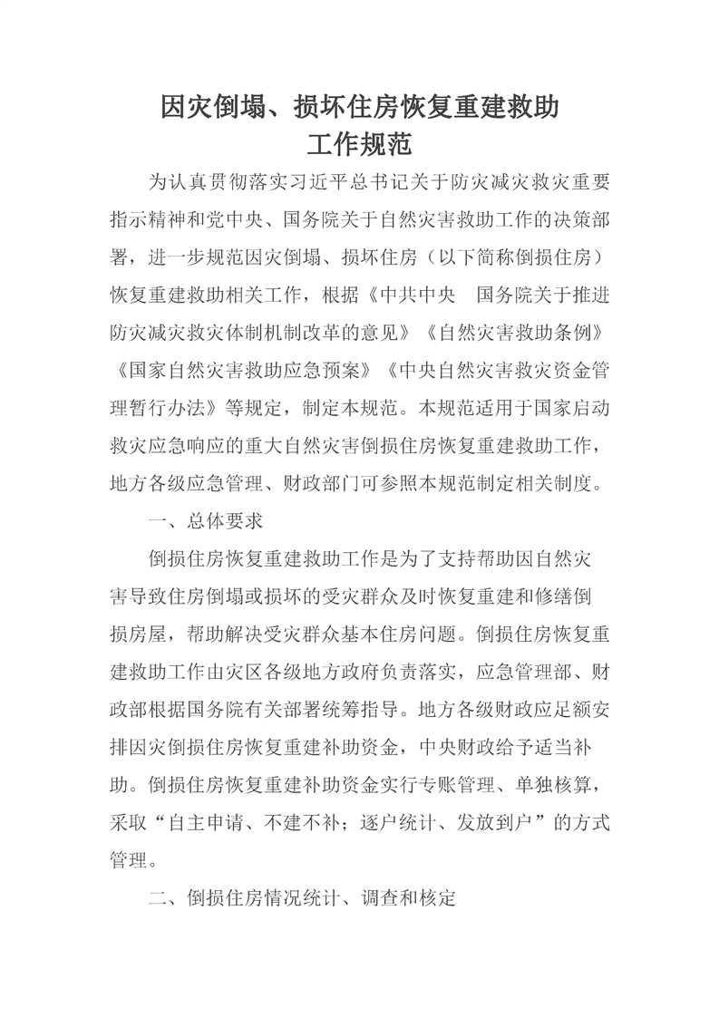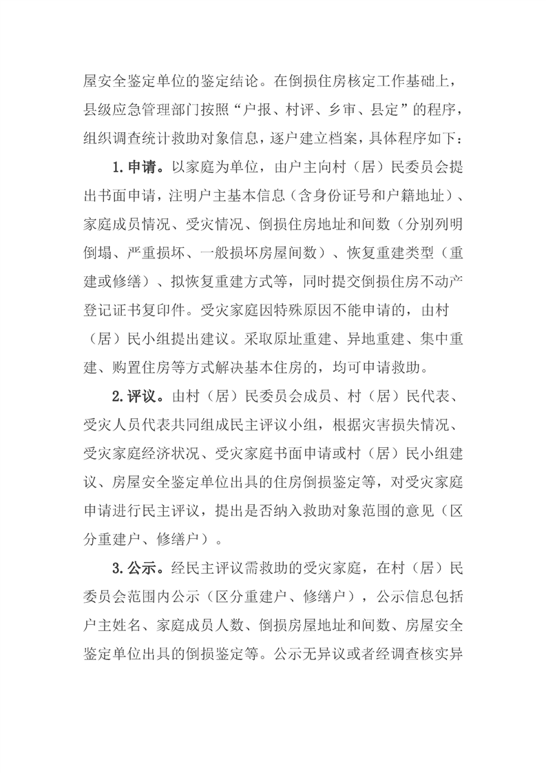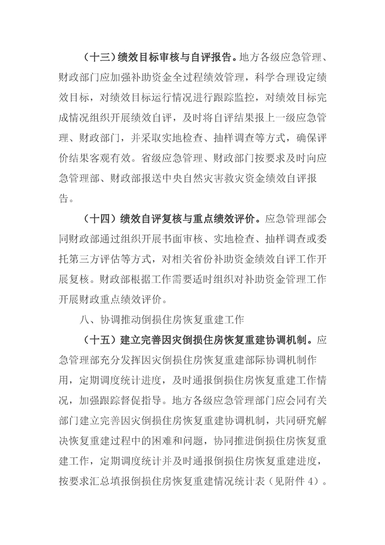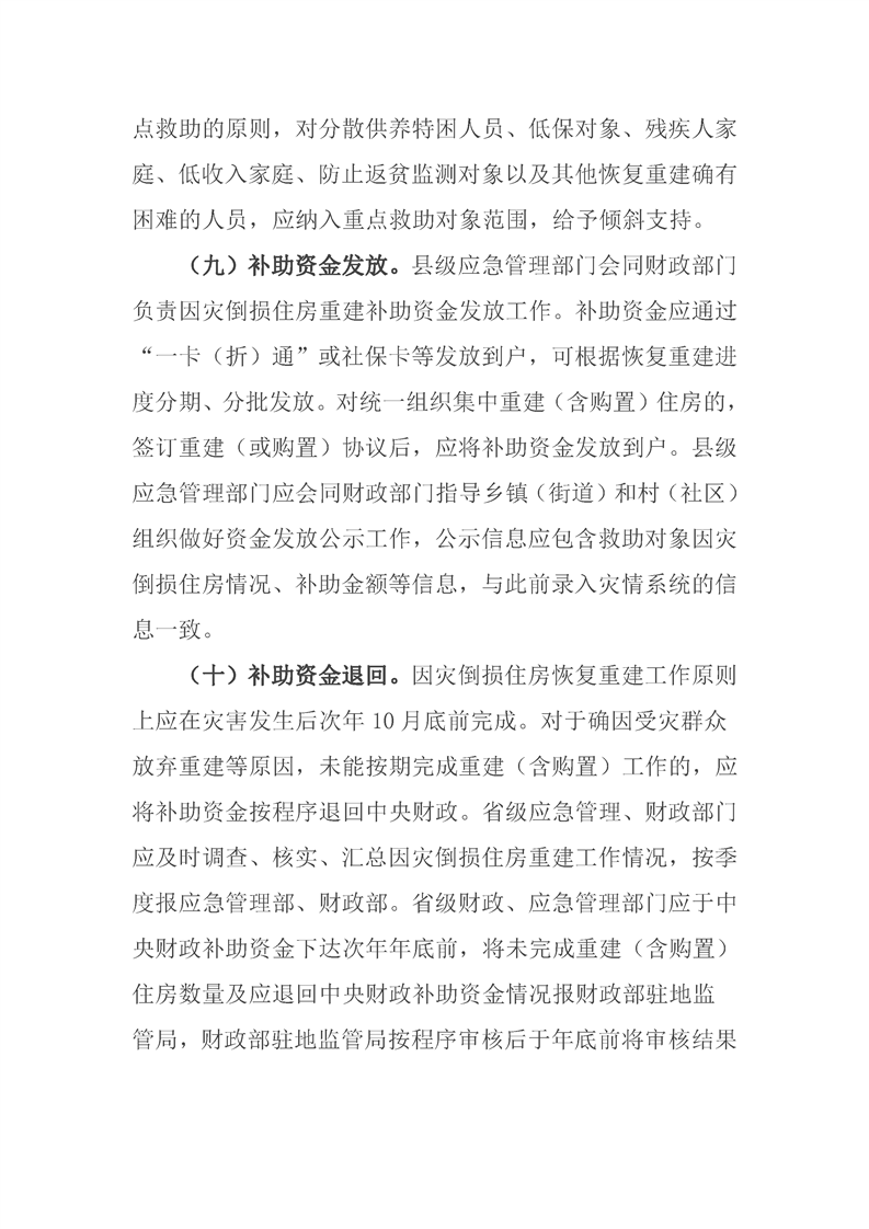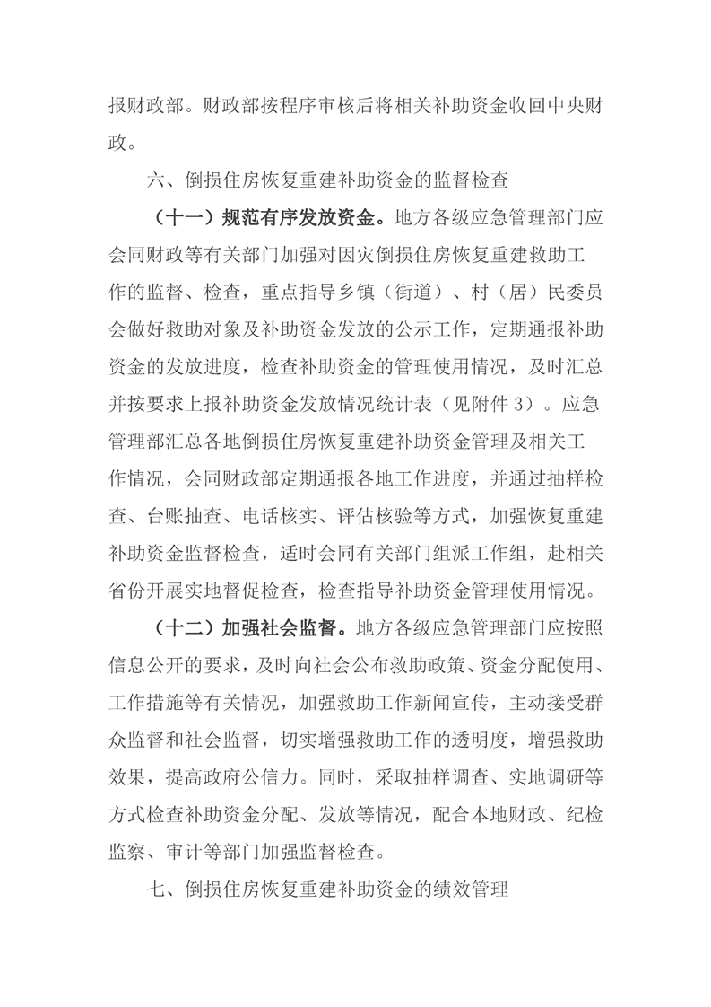 应急管理部 财政部关于印发《因灾倒塌、损坏住房恢复重建救助工作规范》的通知
