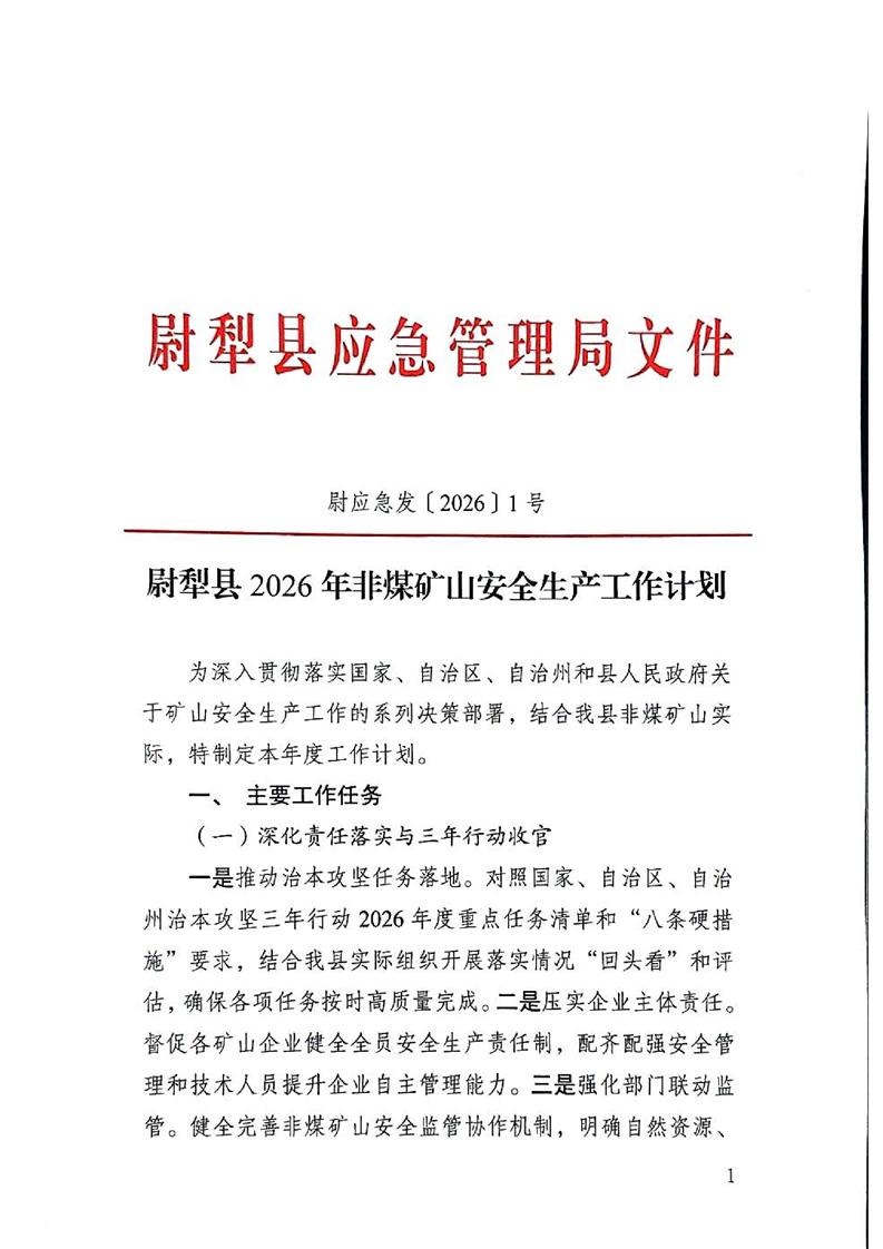 尉犁县2026年非煤矿山安全生产工作计划