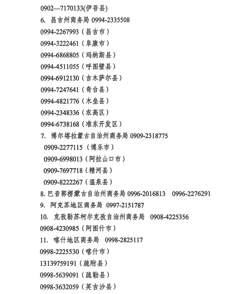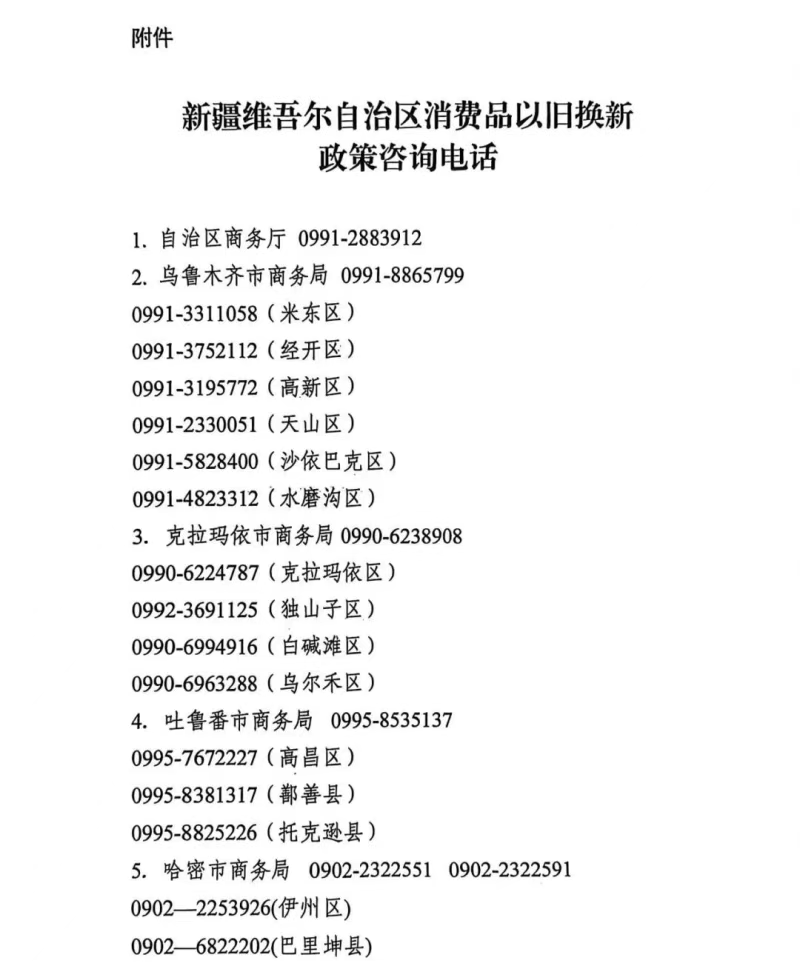 附件:新疆维吾尔自治区消费品以旧换新政策咨询电话