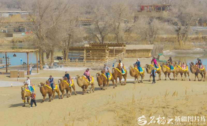 3月20日,游客在尉犁县罗布人村寨景区骑骆驼游玩。汪志鹏 摄
